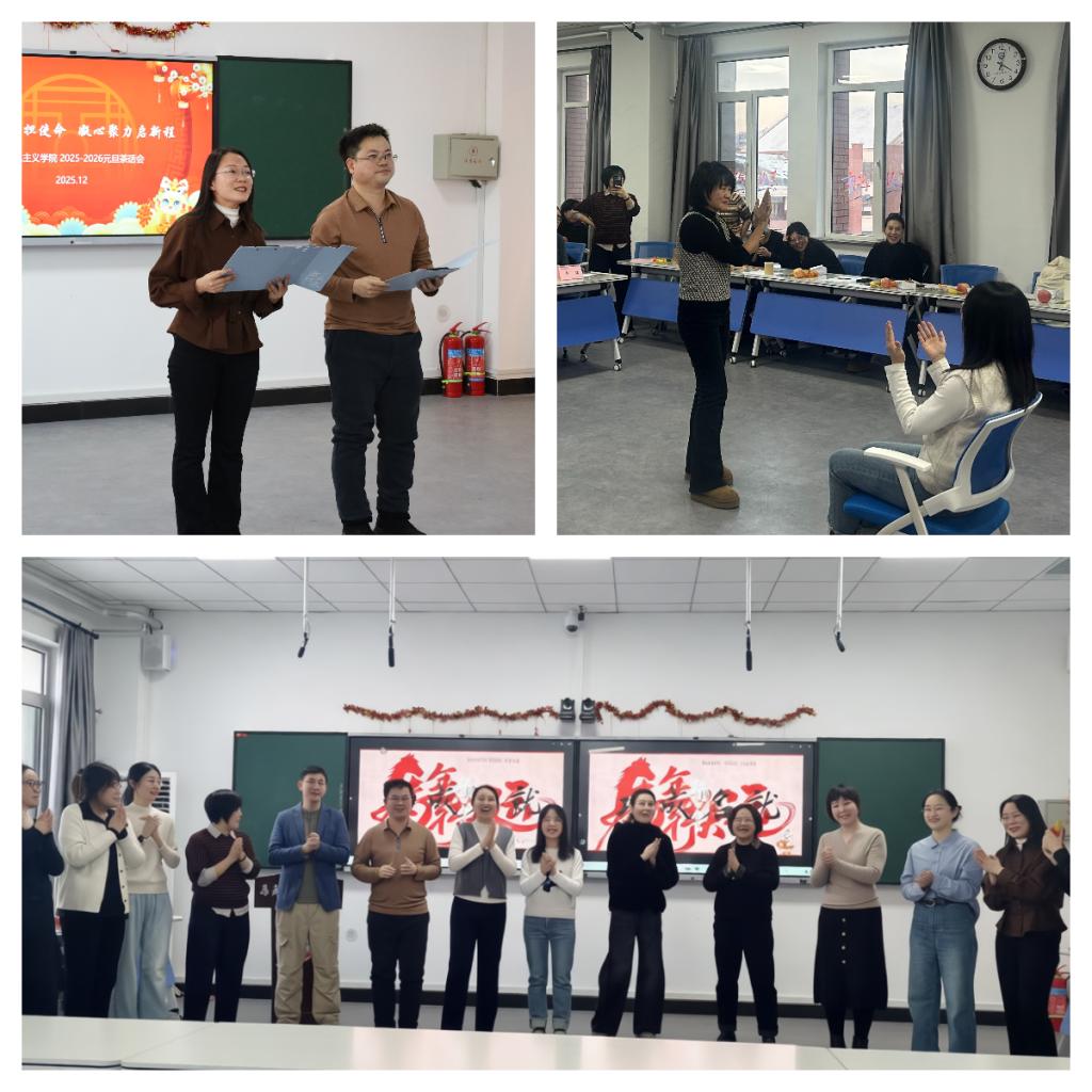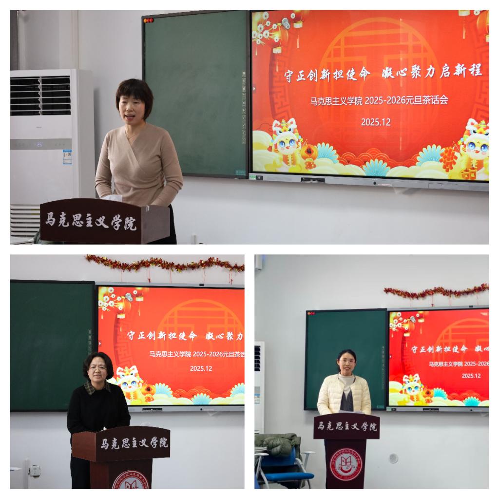 为营造欢乐祥和的节日氛围,凝聚全院教师的向心力与战斗力,12月24日下午,马克思主义学院以“守正创新担使命 凝心聚力启新程”为主题的2025-2026元旦茶话会在智慧西楼515教室温馨启幕。学院领导班子成员与全体教师欢聚一堂,共话过往成就,共绘发展蓝图。