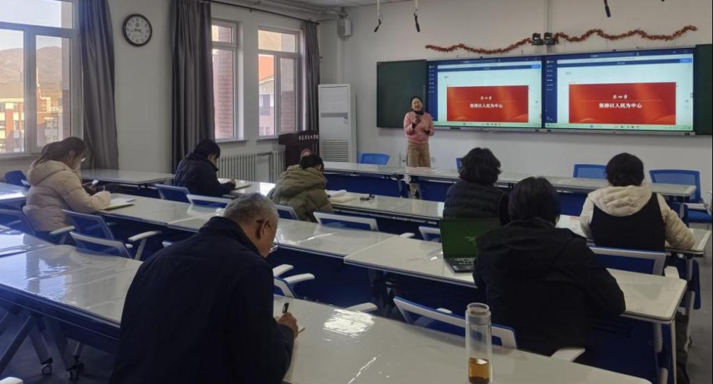 为进一步贯彻落实习近平总书记在学校思想政治理论课教师座谈会上的重要讲话精神,推动思政课教学改革创新,3月18日下午,习近平新时代中国特色社会主义思想概论教研室在智慧西楼515召开本学期第三次集体备课会,聚焦课程第四章“坚持以人民为中心”的教学设计与实践等内容展开深入研讨。本次备课会由教研室主任关淇文主持,全体授课教师参加。